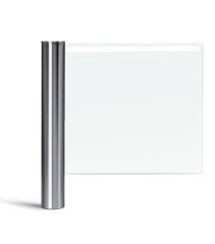 motor drive integrated into the gate post swings 90° in the set direction and resets smoothly to the home position after the passage